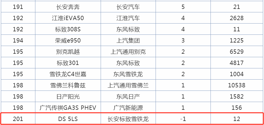 目前,我们能查到的DS 5LS销量,只有8月份的销量数据,而排名也是排在所有车型的倒数第一,为-1辆。今年1-8月累积销量则为12辆,两位数的数字确实有点难堪,也许这也是8月份以后DS 5LS不再公布销量的原因了。