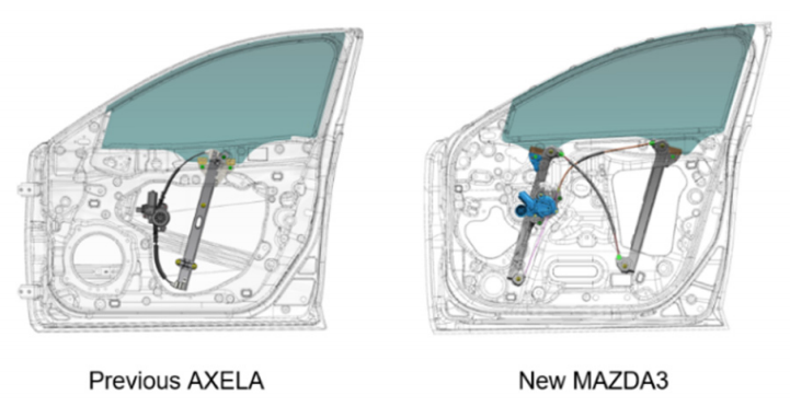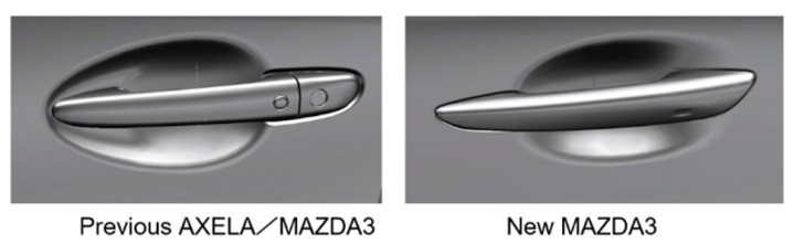 车身上的间隙很多,比如车门、门把手、后风挡玻璃与尾箱盖缝隙,在不增加隔音材料的情况下,只有从源头去减少风噪,马自达的办法是把门把手设计的更流畅。这也证明一个道理,好看的东西往往也好用。