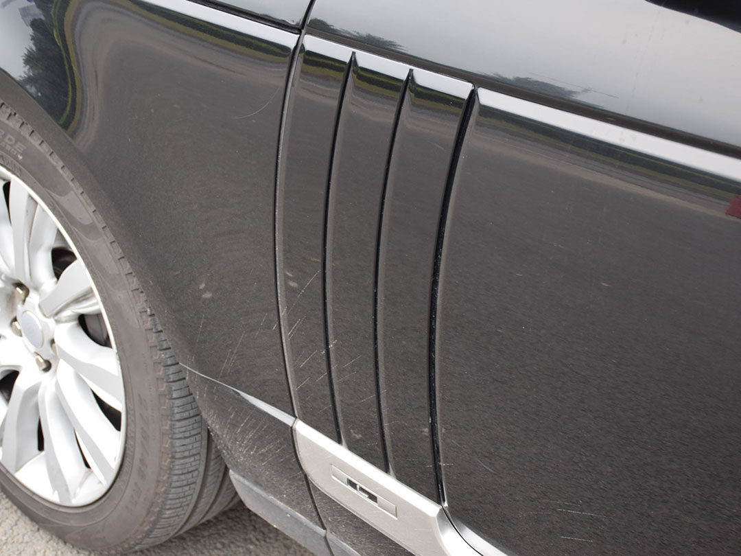 十年磨一剑,路虎揽胜的换代周期在豪车中可以说是很长的,在很长一段时间里揽胜也是最豪华SUV的标志,在揽胜身上有诸多历代传承的经典元素,大面积的侧腮就是其中之一,只不过来到第四代揽胜上,这个侧腮已经没什么必要了,经过设计师的激烈讨论,最终侧腮得以保留,只不过它变成了装饰用。