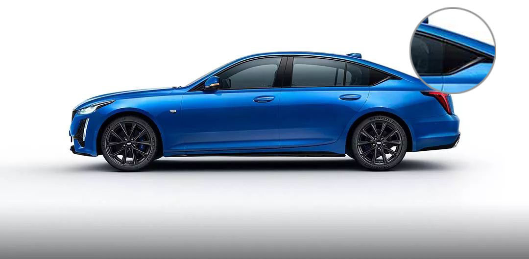 三角窗在不少车型上都能见到,三角窗的作用一来是造型需要,二来可以增加采光,但是有些车辆连三角窗也是假的,比如说凯迪拉克CT5。CT5的三角窗从外面看确实像一个三角窗,实际上它是直接贴在了钣金件上,纯装饰用途。