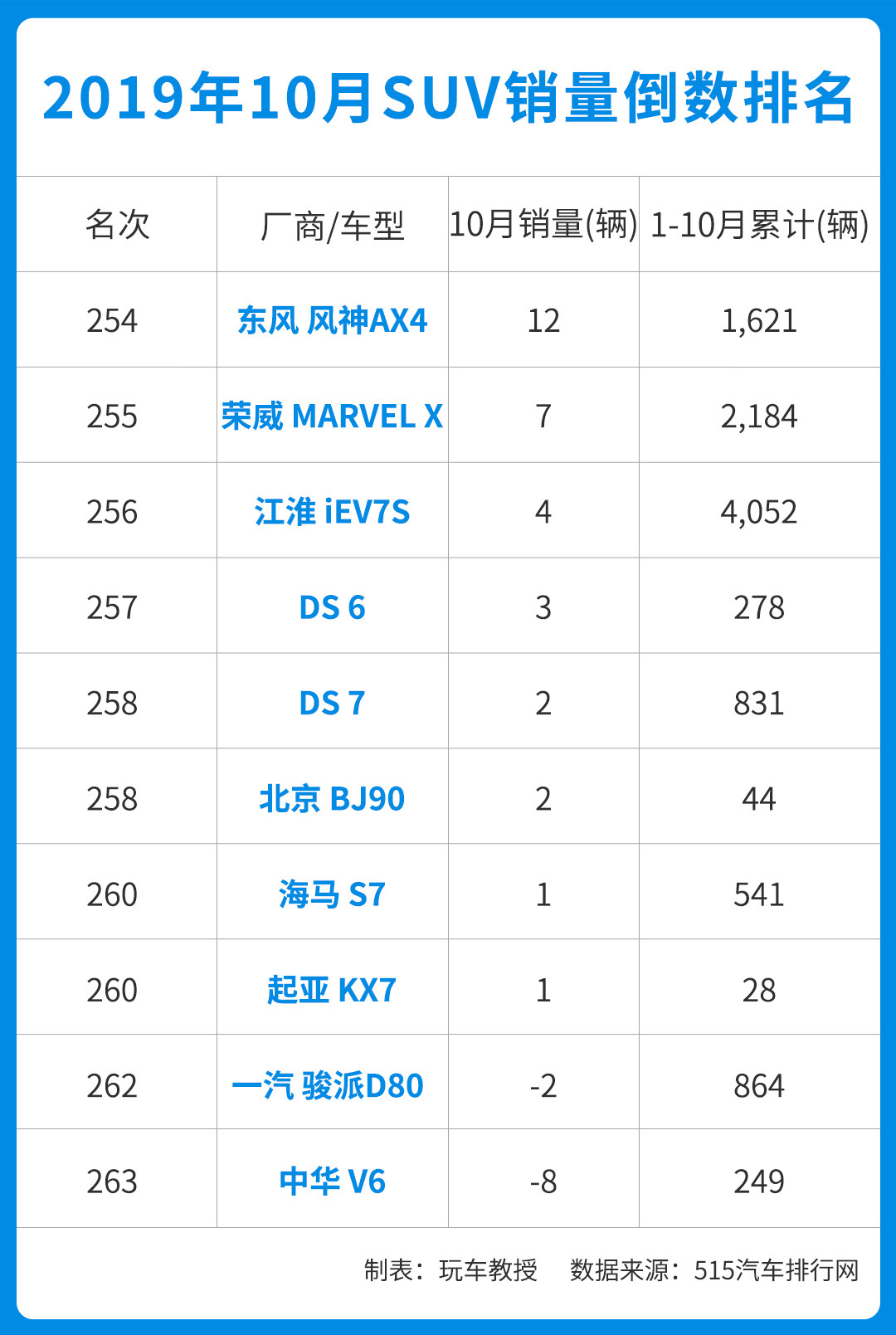 有赢就有输,这句教授也不是第一次说了,所以每个月除了了解排名前十的车型的成功之道外,倒数前十车型也是值得留意的事情。那么教授就从10月里销量倒数的十款SUV中抽几款来分析分析,看下它们是到是什么原因能如此“优秀”。