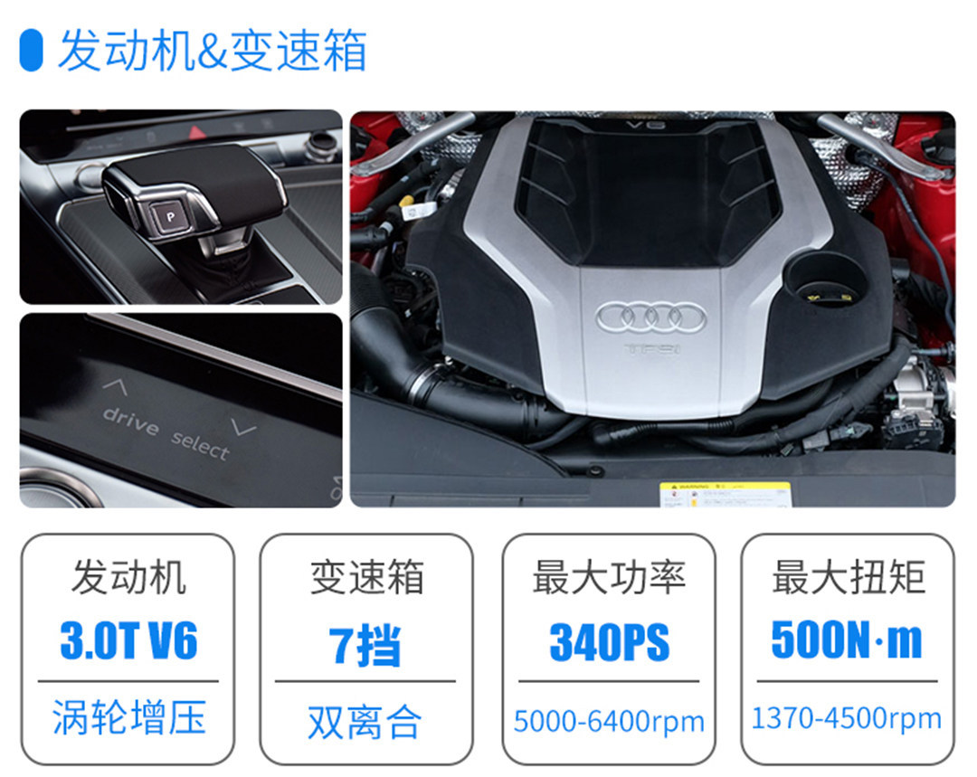 此前测试过的A7是3.0T的55 TFSI车型,在参数上自然更强悍,340马力,500N·m扭矩,官方百公里加速5.3秒,教授实测没有发挥出最佳效果,同时配备了48V轻混系统,与之匹配的是7速双离合变速器。