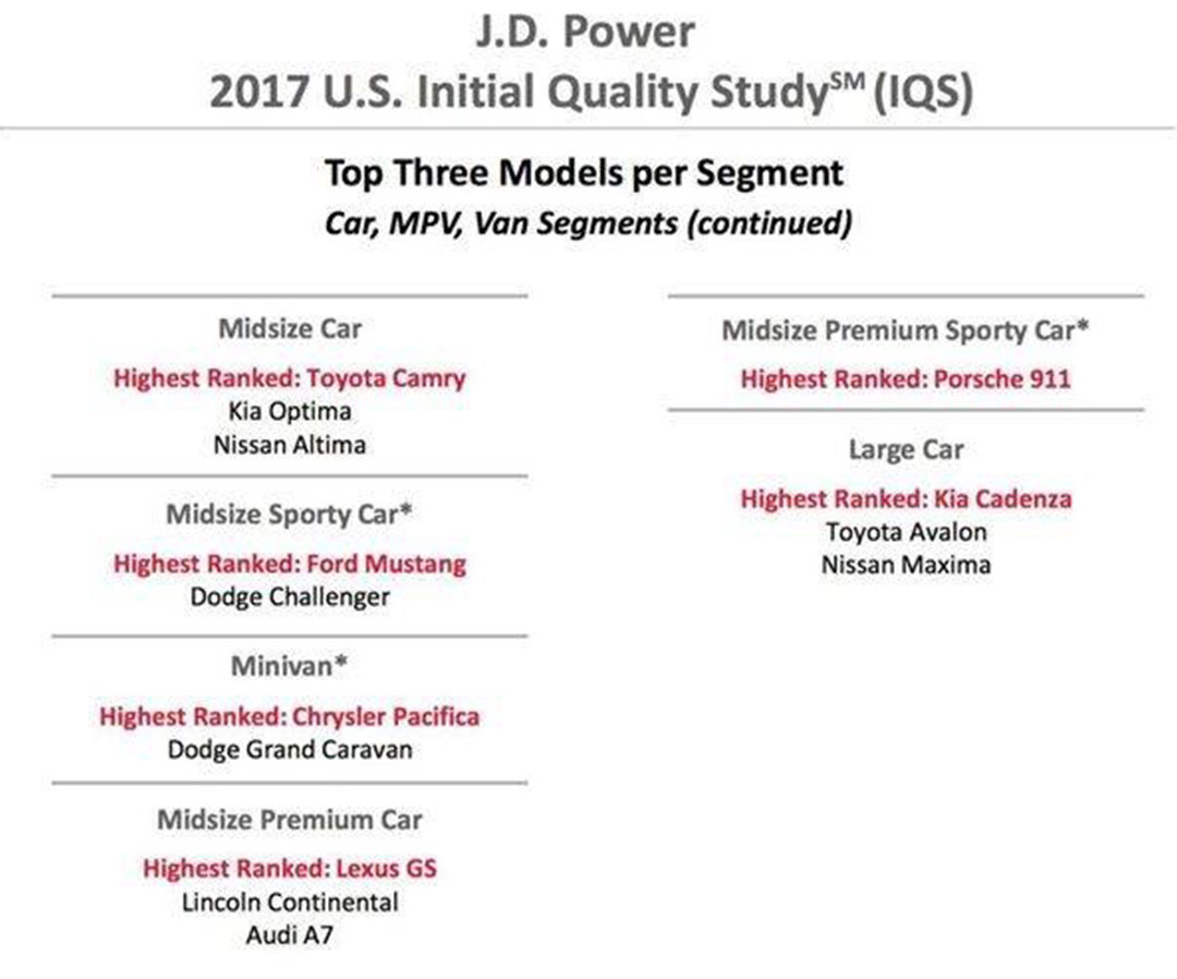 先不讨论细分市场中前三位车型是否真的如J.D. Power说的那么优秀,单就从这个车型的划分来看,教授一度怀疑自己眼睛是不是进沙子了。