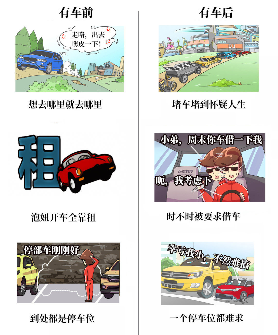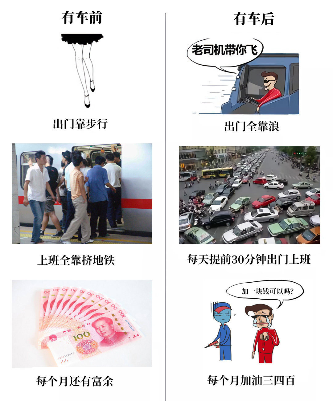 情景4:有车前和有车后的生活变化