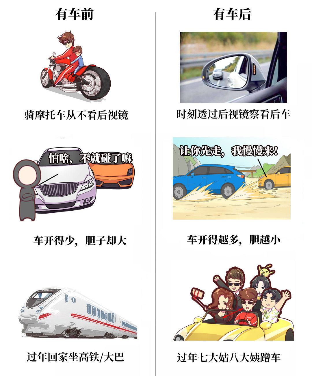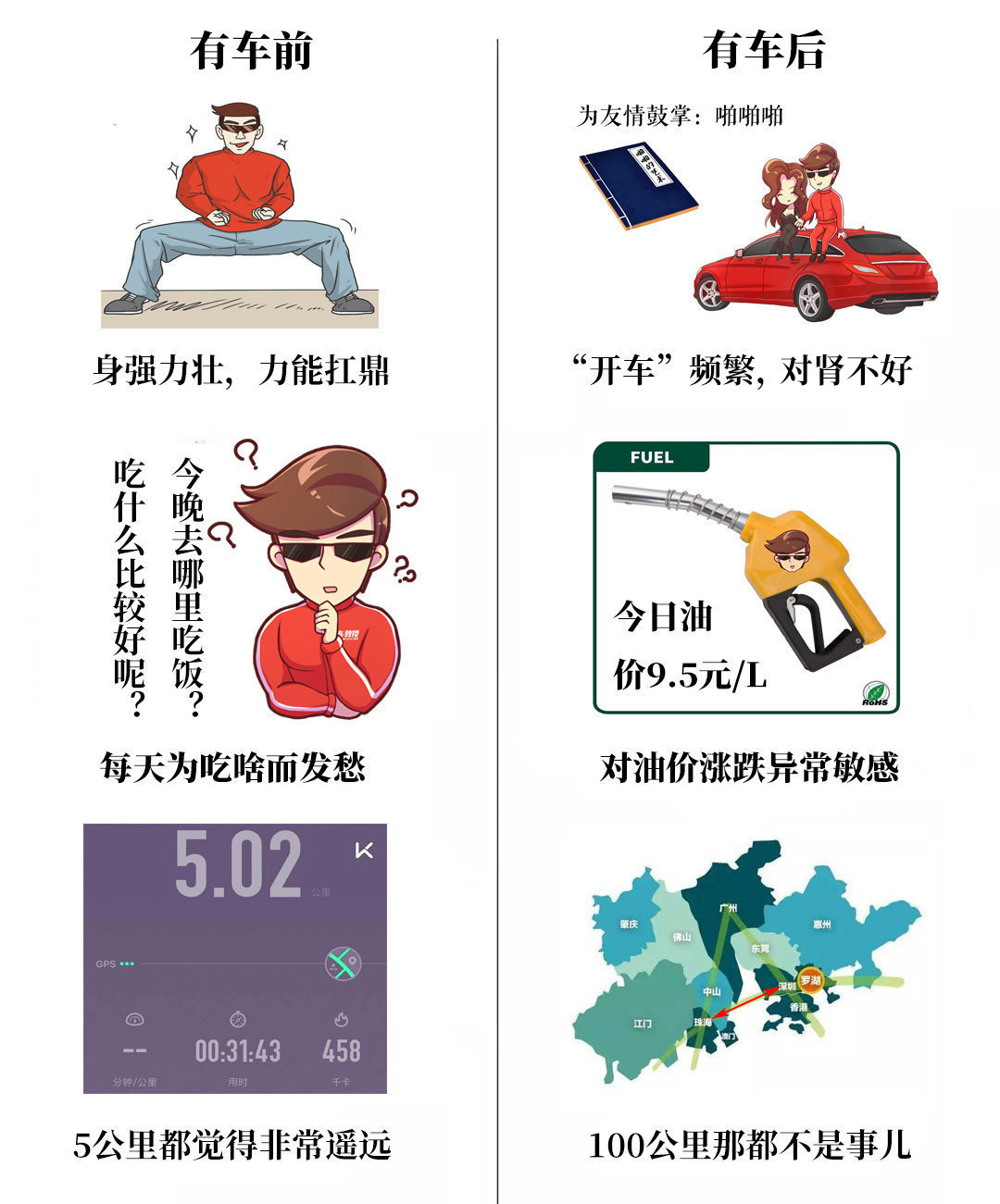 情景5:有车前和有车后的生活变化
