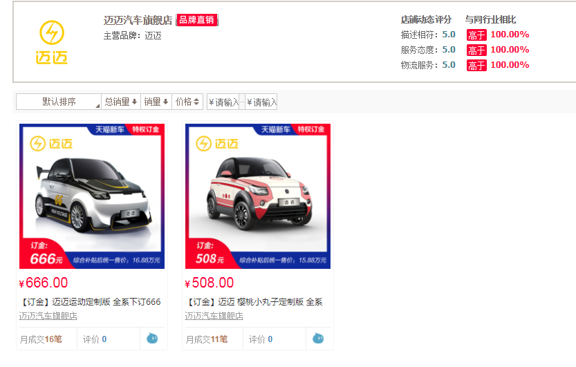 如果你仍要执着于“老头乐”般的造型,赛麟也给出了解决的良方,用高定价来体现迈迈的精品定位,与那些廉价的“老头乐”划清界线。双11期间正式对外公布价格,分别为售价15.88万元的樱桃小丸子定制版以及16.88万元的运动定制版,而此前两款车型已在天猫商城接受预订,截止目前均收获超过10笔的交易记录。