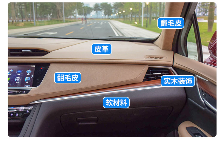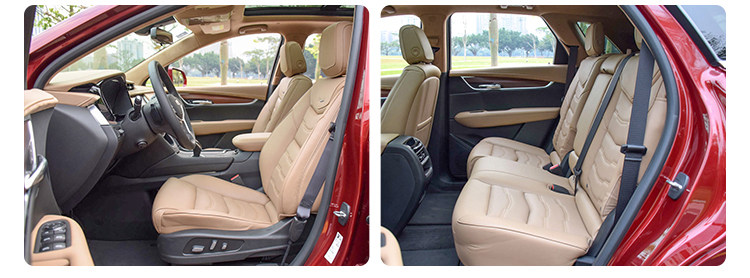 凯迪拉克XT5在视觉效果上更突出,车内遍布凯迪拉克标志性“V”型线条,方向盘、中控饰条、座椅等等;