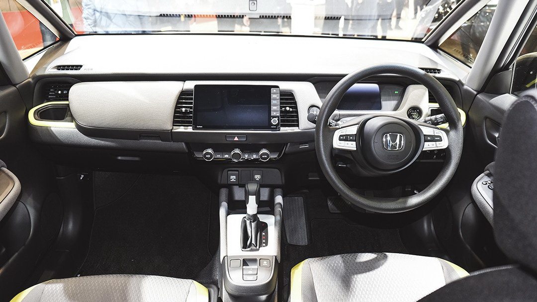 新一代飞度内饰简洁实用,几乎没有任何装饰,液晶仪表盘的尺寸小得有些廉价。新车会配备Honda Sensing主动安全系统,不过配置率预计不会很高。