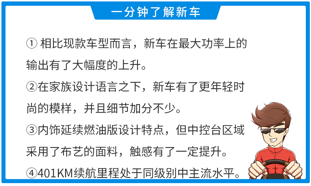 作为中期改款,新车的改变要比传统定义上的变化要来得更多。内外换新之下,新车往着精致感的方向发展。而在核心方面上,新车在保持了401KM较为不错的续航里程的前提下,最大功率的输出有了更明显的提升,能够更好满足消费者在动力上的需求。在加上较为亲民的价格,新车的竞争力还是比较突出的。最后,对于消费者而言,如果预算10万元左右,又想购买纯电动SUV车型,不妨考虑下今天的主角。