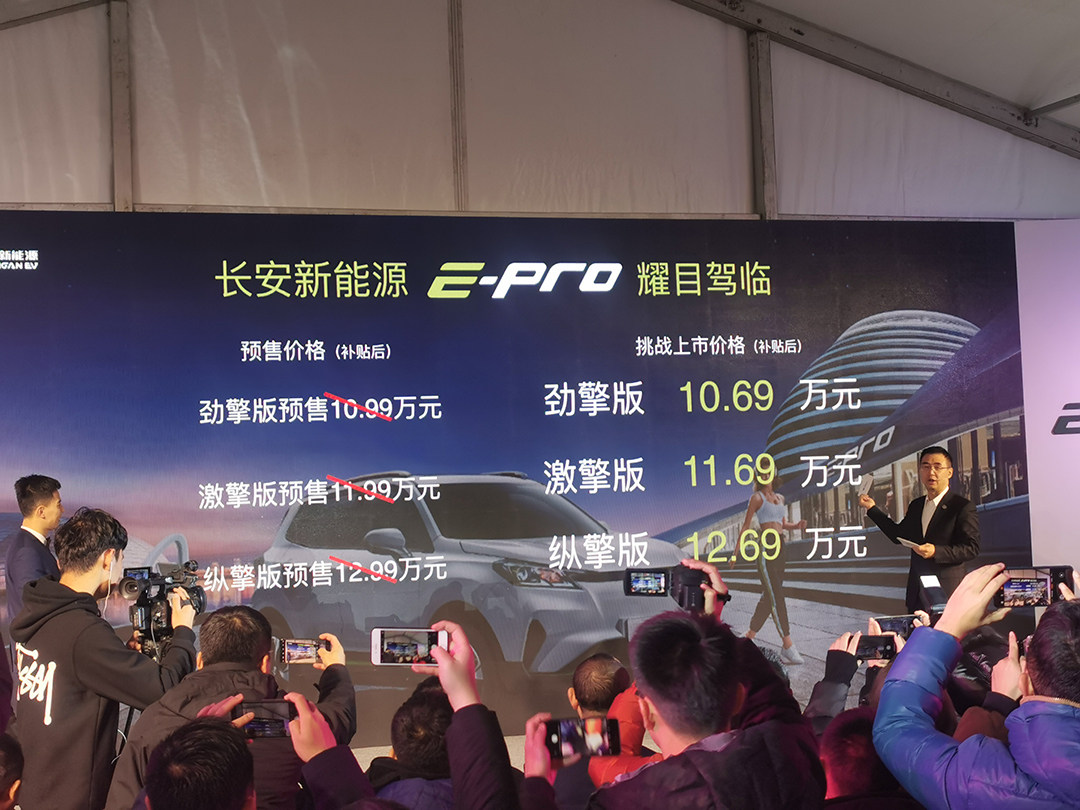 12月10日,长安新能源 E-Pro正式上市,新车补贴后售价为10.69万-12.69万元,共提供了3款配置车型,并且还提供了重安芯礼、3大购车礼以及诚信服务五大承诺等便民政策。在核心硬件方面上,新车搭载了永磁同步电机,其最大功率为163Ps,峰值扭矩为245N·m,相比现款车型75Ps的最大功率,动力上的提升比较明显;而在电池方面上,新车匹配了电池容量为48.3kWh的三元锂电池。在大家最为关注的续航能力上,新车在NEDC工况下续航里程为401KM。