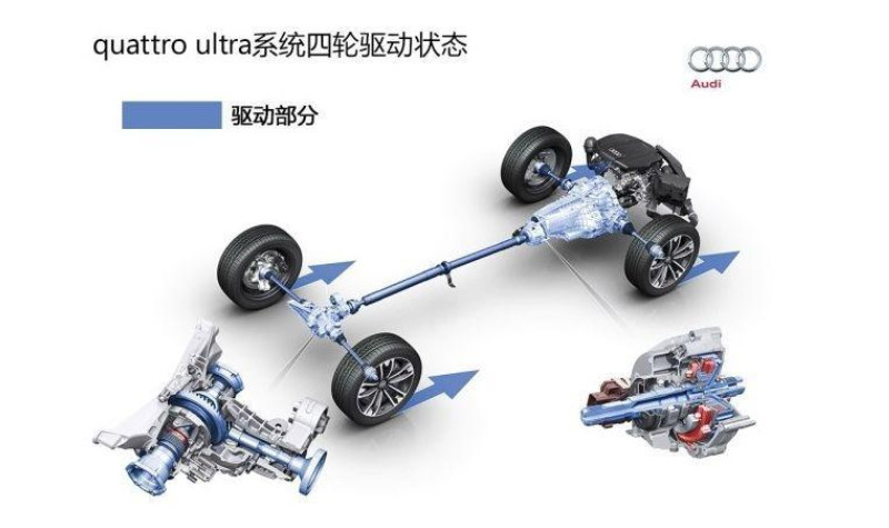 一听到DCT变速箱,人们就觉得这玩意大大降低了车辆的平顺性。但据说Q5L搭载了升级后的quattro ultra 智能四驱系统,这代四驱系统将托森C型中央差速器换成冠状齿轮差速器,智能四驱系统还引入更多电控元件和电子传感器,每10毫秒监测一次差速器,随时调整四驱系统。