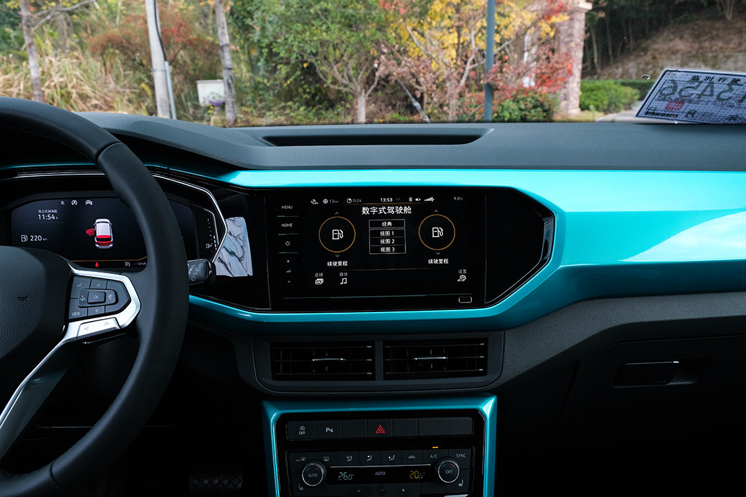 车身尺寸方面,探影长宽高分别为4194/1760/1601mm,轴距为2651mm,其宽度和轴距与途铠一致,车身长度比T-Cross途铠小了24mm,高度大了12mm。