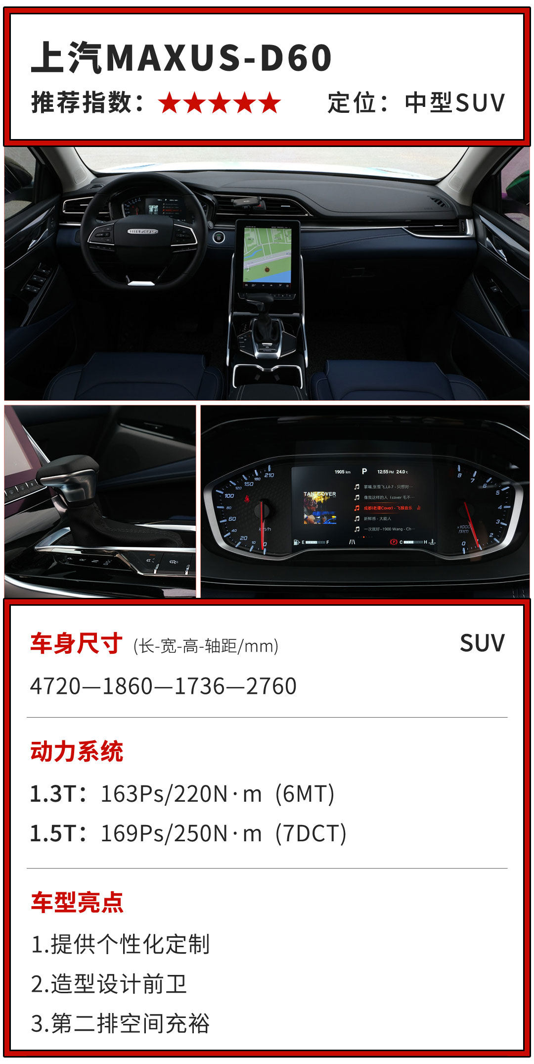 总的来说,上汽MAXUS D60这款车最大的亮点,就算能够自主选配,而其他方面的表现也比较均衡,是一款典型的“万金油”车型。如果你对驾驶乐趣没有太高的追求,只是想买台大空间SUV踏踏实实过日子,并想要自己的爱车看起来比较个性和独一无二,那么D60还是值得考虑的。