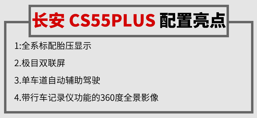综合来看,长安CS55PLUS不仅带来了令人眼前一亮的外观与内饰设计,在配置水平和动态驾乘感受方面也带来了许多惊喜。高颜值、高配置、舒适的驾乘感受,配合仅9.19-11.49万元的售价,相信长安CS55PLUS一定会俘获不少年轻消费者的芳心。