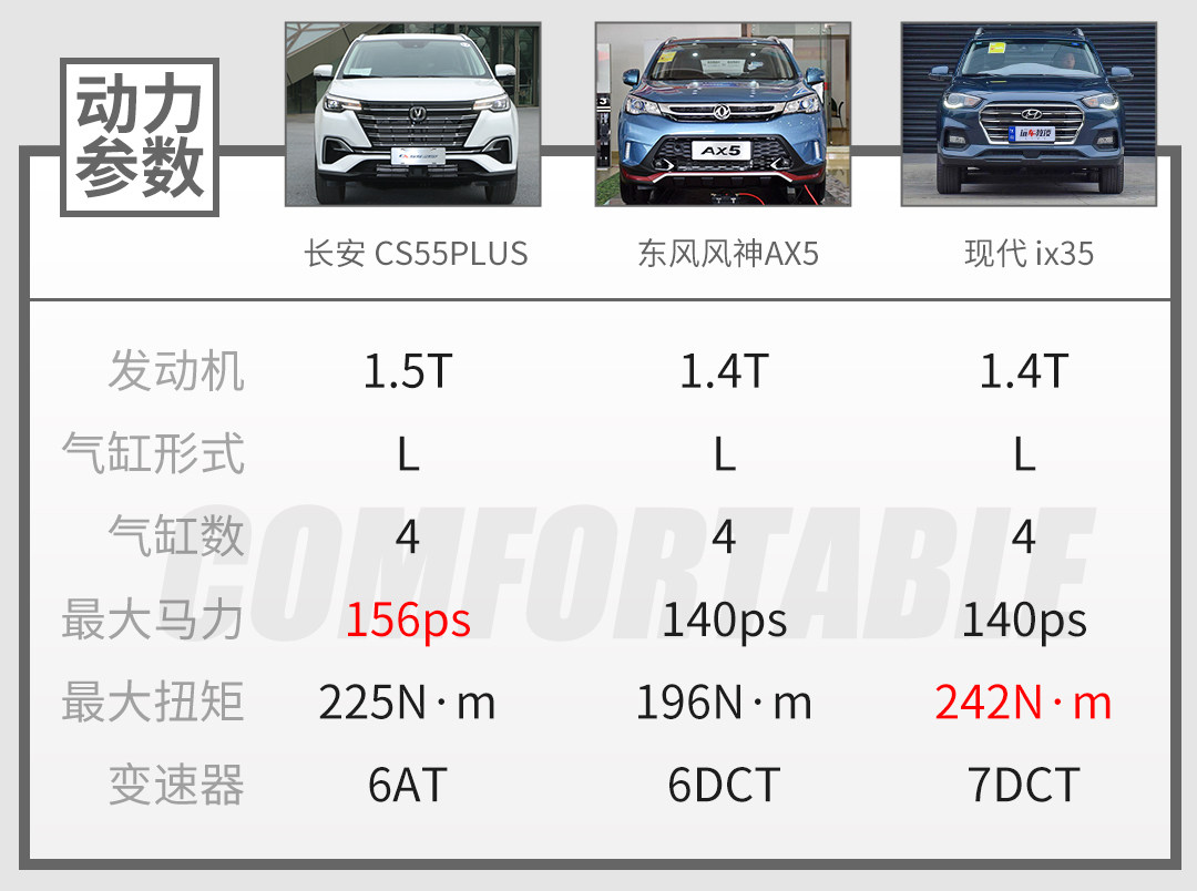 在动力方面,长安CS55PLUS提供1.5T涡轮增压发动机,可输出最高156匹马力和225牛·米的峰值扭矩,从参数方面看表现中规中矩。与这款1.5T发动机搭配的是6前速手动变速箱或第三代爱信6AT变速箱;据悉中高配车型搭载的这款第三代爱信6AT变速箱可以实现高达95%的传动效率,实现油耗降低8%、动力感受平均提升6%的效果。