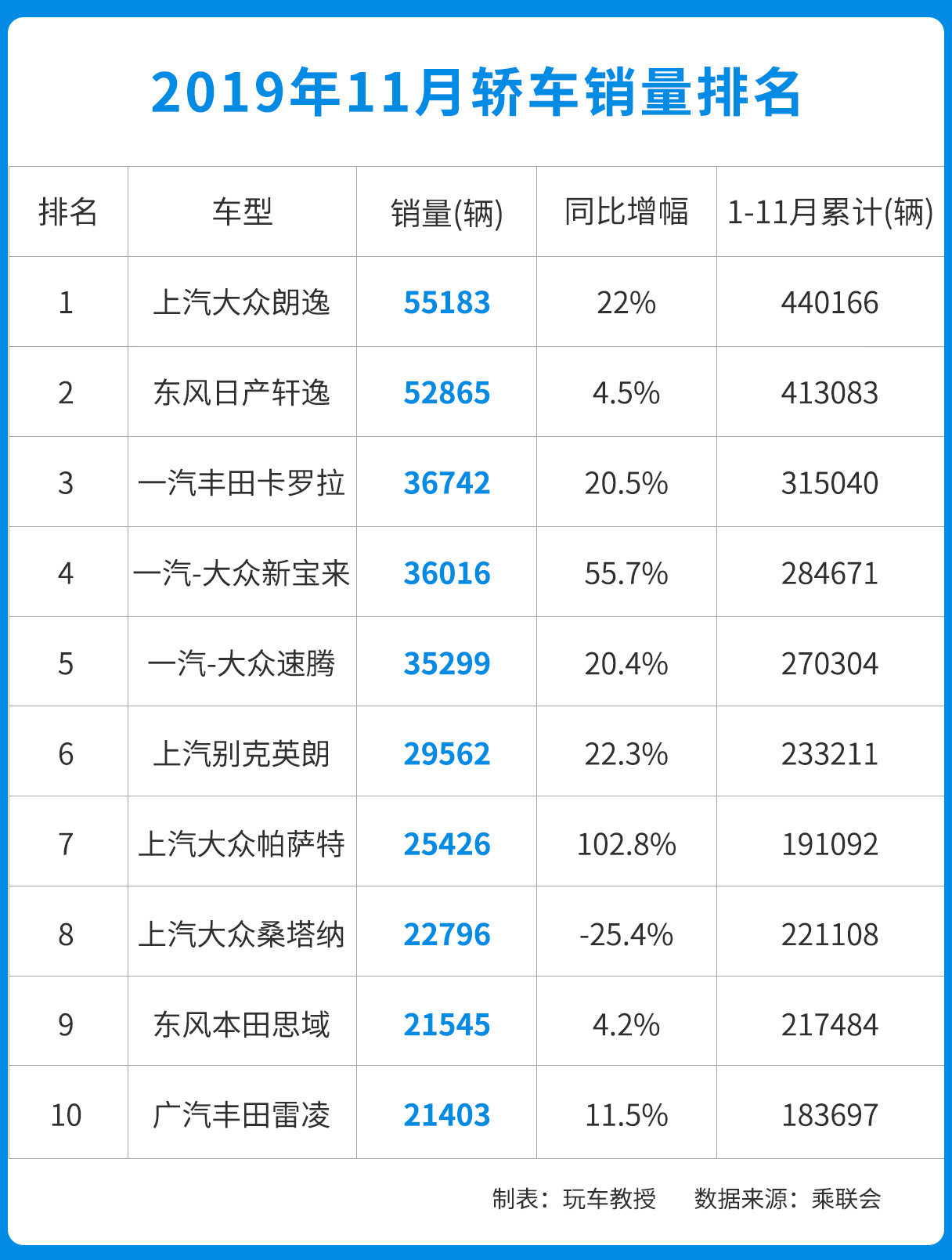 目前乘联会公布了11月汽车销量数据,2019年即将结束,今年是汽车消费行情偏冷的一年,之前的“金九银十”传统消费旺季也没见得表现多好,那在今年最后的冲刺期中,各家车企又有怎样的表现,在轿车领域是否还是那些熟悉面孔独占鳌头?教授帮大家盘点一波,11月轿车销量榜里最特别的那几个。