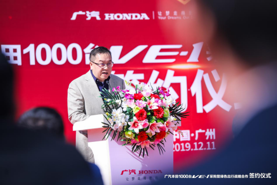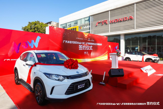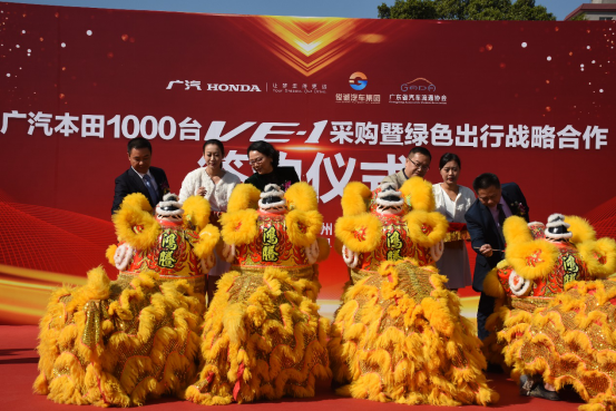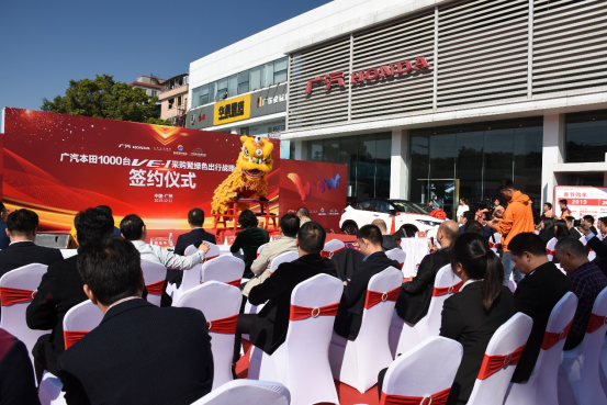 12月11日,广州蓝天白云,迎来了暖洋洋的冬季,位于广州湿地公园对面的广汽本田广诚店传来阵阵锣鼓声,现场活跃着喜气洋洋的气氛。广汽本田1000台VE-1采购暨绿色出行战略合作签约仪式在这里隆重举行。