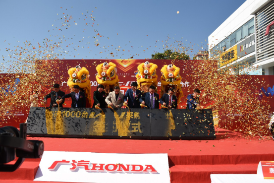 喜庆吉祥的醒狮助兴表演拉开了本次活动的序幕,热烈的气氛就像VE-1带给我们的蓝天白云一样美好。主持人隆重地向大家介绍了出席本次活动的重要嘉宾,并邀请广汽本田销售部大客户管理科科长莫艺涛先生、广东省汽车流通协会会长严斐女士、广东省汽车流通协会汽车租赁分会主任、广州市汽车租赁行业协会会长黄小玮先生以及广东俊诚汽车集团董事长赖俊东先生一起为醒狮点睛。。