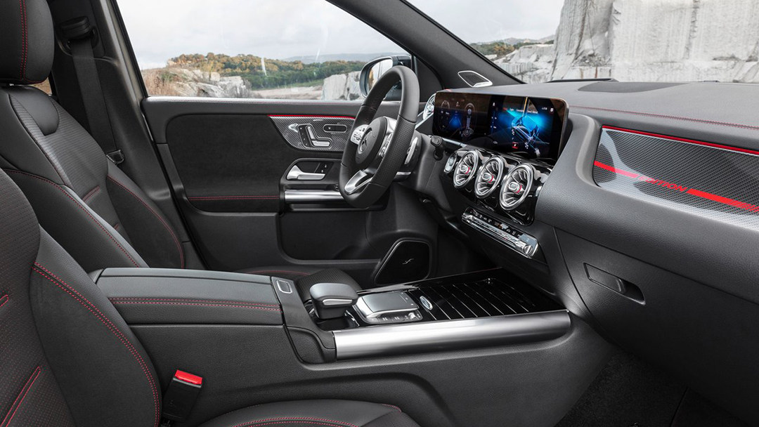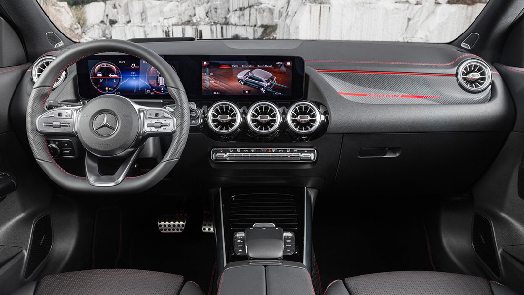 内饰方面,全新奔驰GLA采用了与GLB相似的设计,依然是贯穿式双屏以及圆形出风口。这是源自于S级的内饰设计风格,已经运用于奔驰旗下多款车型。其最大亮点就在于氛围灯的应用,在30万级车型市场,质感明显要比对手更强。