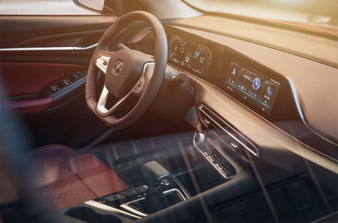 内饰方面,新车内饰采用红黑双色设计,凸显出运动感。同时新车还采用了环抱式驾舱设计,将中控台和大屏偏向于主驾驶倾斜设计。细节方面,新车中控台配备了全液晶仪表以及大尺寸中控液晶屏,提升了车内的科技感。