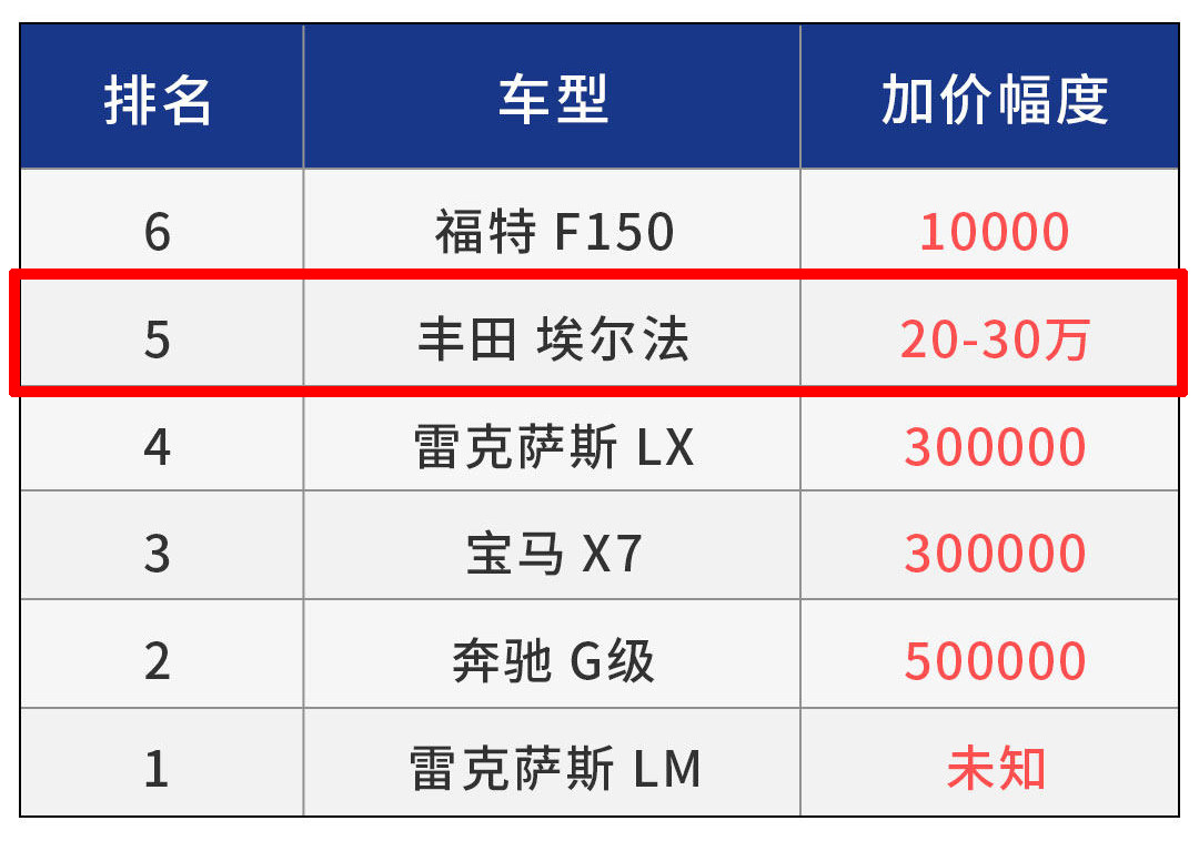 被港澳台明星带火之后,埃尔法迅速成为高端商务接待车,但作为进口车的埃尔法进入国内的数量又有限,供不应求之下价格自然被炒起来了。根据教授上半年实访调查的结果来看,埃尔法目前在广州地区加价幅度高达20-30万元。