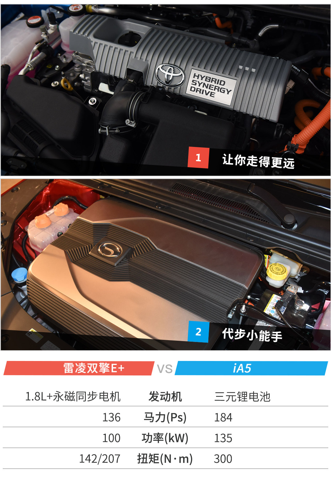 虽然,雷凌双擎E+使用的是老款雷凌的平台,不过即使这样雷凌双擎E+仍然值得推荐的,毕竟上一代的雷凌也是得到不少用户的好评,并且作为一辆可以上绿牌的插电混动车,对于不少身处限购城市的用户来说都是非常吸引的。不过,如果你觉得双擎E+已经过时了,那还是可以选择具有丰田品质的iA5,在外观和内饰上都有进一步的提升,不过在外出自驾游方面你就需要多加考虑了。