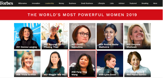 王凤英入选《福布斯》“2019年全球100位最具影响力女性榜单“