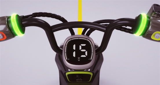 九号电动C不仅拥有出众的颜值,操作上也尽可能简化,不仅支持Ninebot AirLock感应解锁,还配备了NFC卡刷卡解锁,用车、锁车超便捷;两边把手上设计有“光环”状态灯,和极简数字仪表搭配就能轻松了解行车信息。全车仅2个按键,却可以完成骑行所有操作,上手超简单。