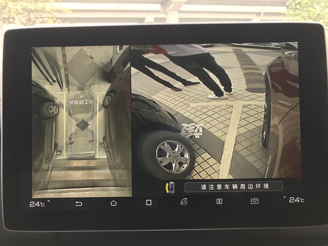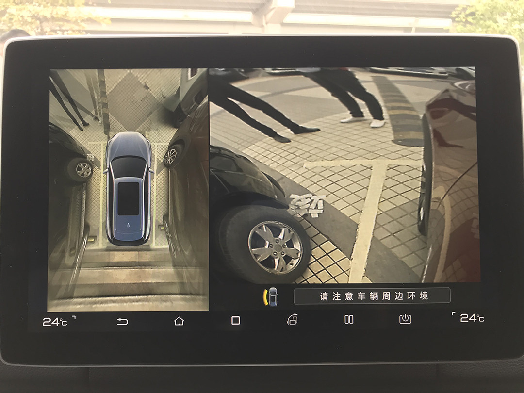 至于升级的 360°全息透明影像系统,是在原有全景合成俯视图的基础上,根据车辆周围的四个超广角摄像头采集的图像和实际车辆运动规律,输入到图像处理芯片中,经过软件处理后进行无缝拼接,以输出全景影像,呈现出整车的全息透明鸟瞰图。用户利用此系统,可轻松将路面的障碍展示给驾驶者,驾驶者可根据路面情况作出相应的规避动作,保障安全驾驶。打开方式也很简单,直接可以通过方向盘按键进行开闭。需要注意的是,唐EV车型本身也搭载了360°全息透明影像,所以升级前后是没有变化的。