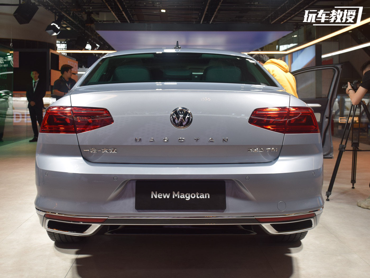 尾部辨识度相对较好,车牌的位置和尾灯的造型也是区别于帕萨特的地方,总体的造型改变不多,而细节的营造比旧款要更加精致,例如“Magotan”的英文标识放在了车标下方,高级感随之而来,这也是大众最新的设计语言;此外下方排气口部分加入了镀铬条进行点缀。