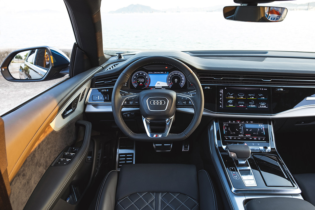 Q8的内饰相对于当前奥迪旗下的其他高档车型来说是平平无奇的,几乎实现全触控化操作的中控多媒体系统以及尺寸达12.3英寸的全液晶仪表都不是什么新事物。平底式方向盘握感出色,但造型却不及A8L那样富有冲击力,而那两张如高性能跑车一般的前排运动座椅,竟然也配备了加热、通风以及按摩功能,乘坐舒适性表现优秀,激烈驾驶时包裹性表现却是一般。
