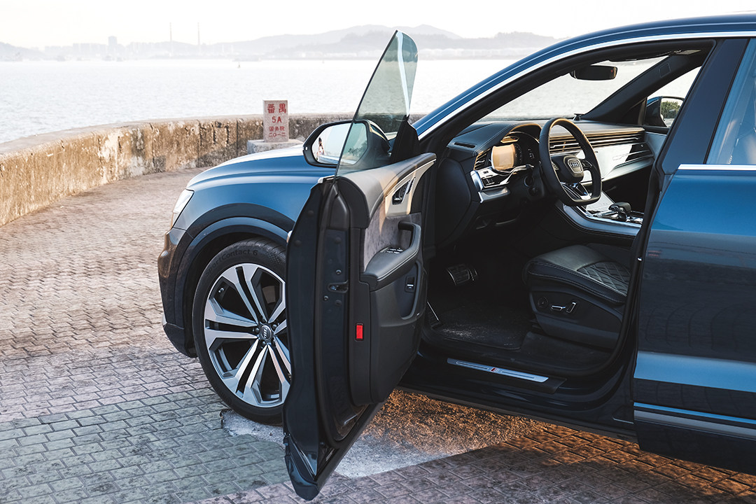 打开无框车门,厚重的双层夹胶玻璃会让Q8的体重显著上涨,但这却是优秀隔音性能的硬件保障。毕竟,在那富有动感的外壳之下,舒适性仍是Q8作为一款百万级豪华SUV需要重点关注的内容。