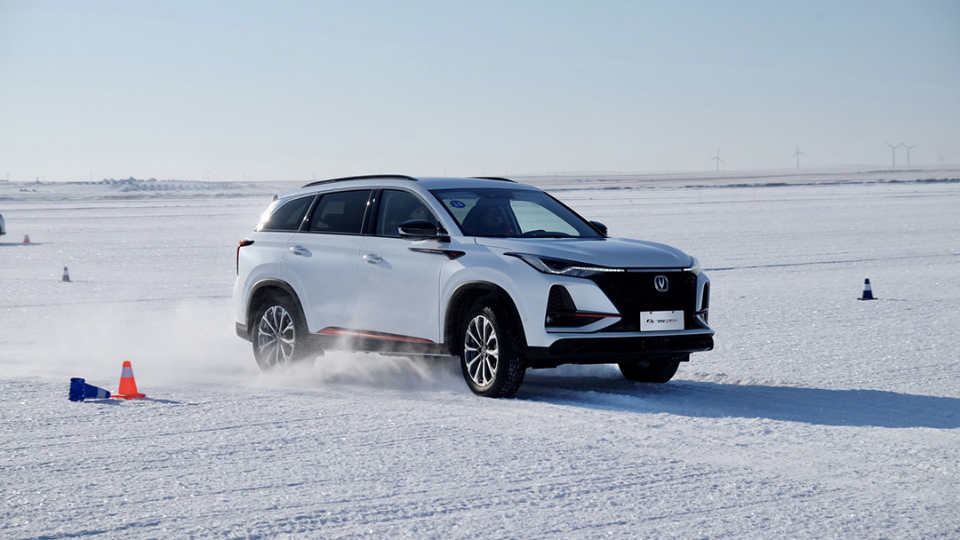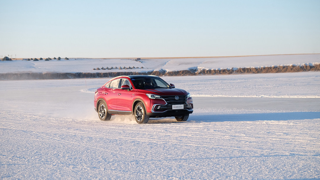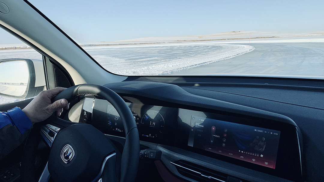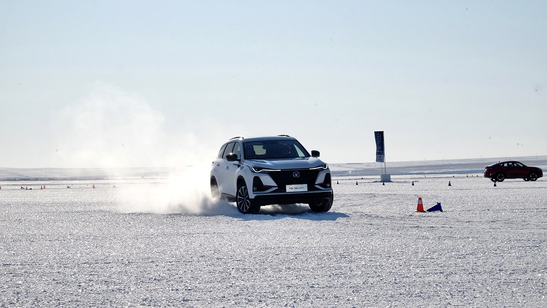 不同于那些豪华品牌,前驱形式居多的长安汽车在冰雪试驾更多让我们体验电子系统以及底盘表现,而非大家所期待的漂移,更偏向于安全方面。在低附着力,甚至可以说没有附着力的冰面以及雪面上,我们分别感受了开启ESP以及关闭ESP的驾驶。