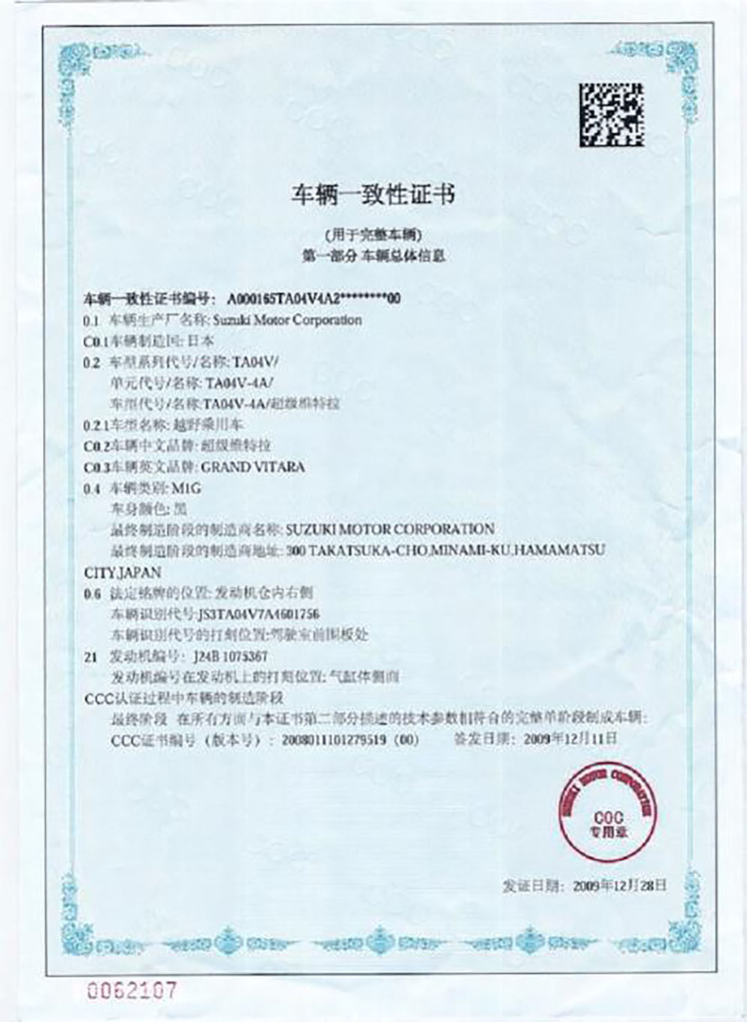 到最后,对车辆手续的检测就告一段落了,另外,我们同样不能忽视的还有车辆的证件,检查证件是否齐全也是至关重要。一般在提车时,我们能拿到的有购车发票、车辆合格证、车辆一致性证书、三包手册、保险单以及保险单等等,这些东西都关乎着日后你车辆的上牌问题。