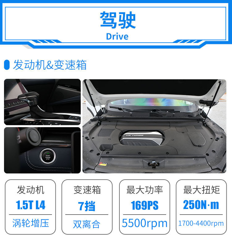 在动力方面,上汽MAXUS D60采用了型号为15E4E的1.5T发动机,匹配7速双离合变速箱,可最高输出169匹马力以及230牛·米的扭矩,这个动力在同级别的发动机中处于一个较为优秀的水平,基本能够满足日常驾驶对于动力的一个需求。