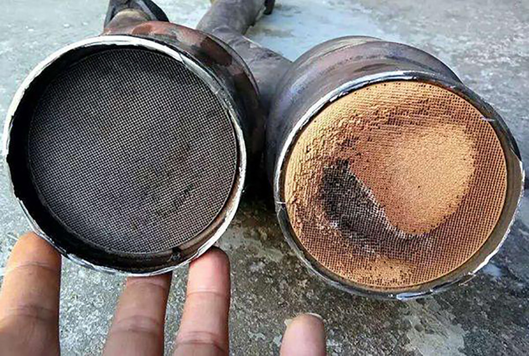 先来说说三元催化器是有什么用的,这是放置在排气歧管与排气管之前的一个净化装置,将燃烧室燃烧后的一氧化碳、碳氢化合物和氮氧化物这些有害气体通过氧化,转变为无害的二氧化碳、水和氮气,其实说白了就像是家里常用的净水过滤器。在燃烧室排放出来的气体中其实还包含着很多为完全燃烧的粒子,久而久之就会在三元催化器中形成积碳,进而就会出现堵塞,最明显的表现就莫过于油耗增加了。