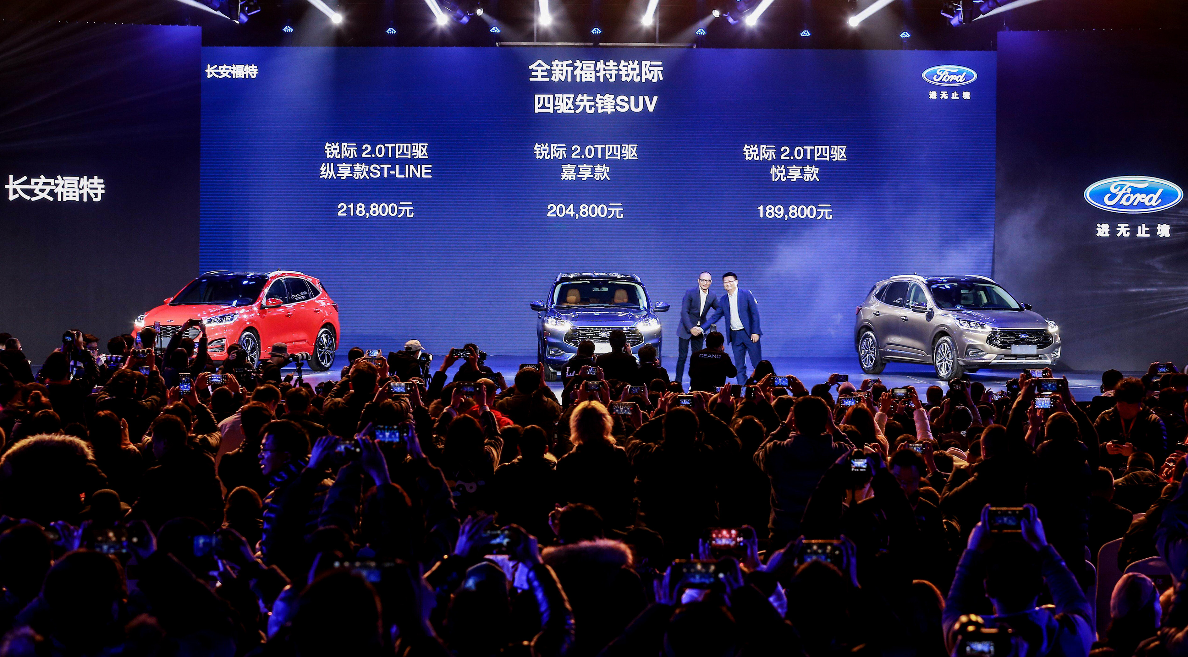 (2019年12月19日,杭州)今日,“四驱先锋SUV”——全新福特锐际Escape于杭州耀目上市,新车共发布2.0T四驱悦享款(Trend)、2.0T四驱嘉享款(Titanium)和2.0T四驱纵享款ST-LINE三款车型,售价分别为189,800元、204,800元和218,800元。