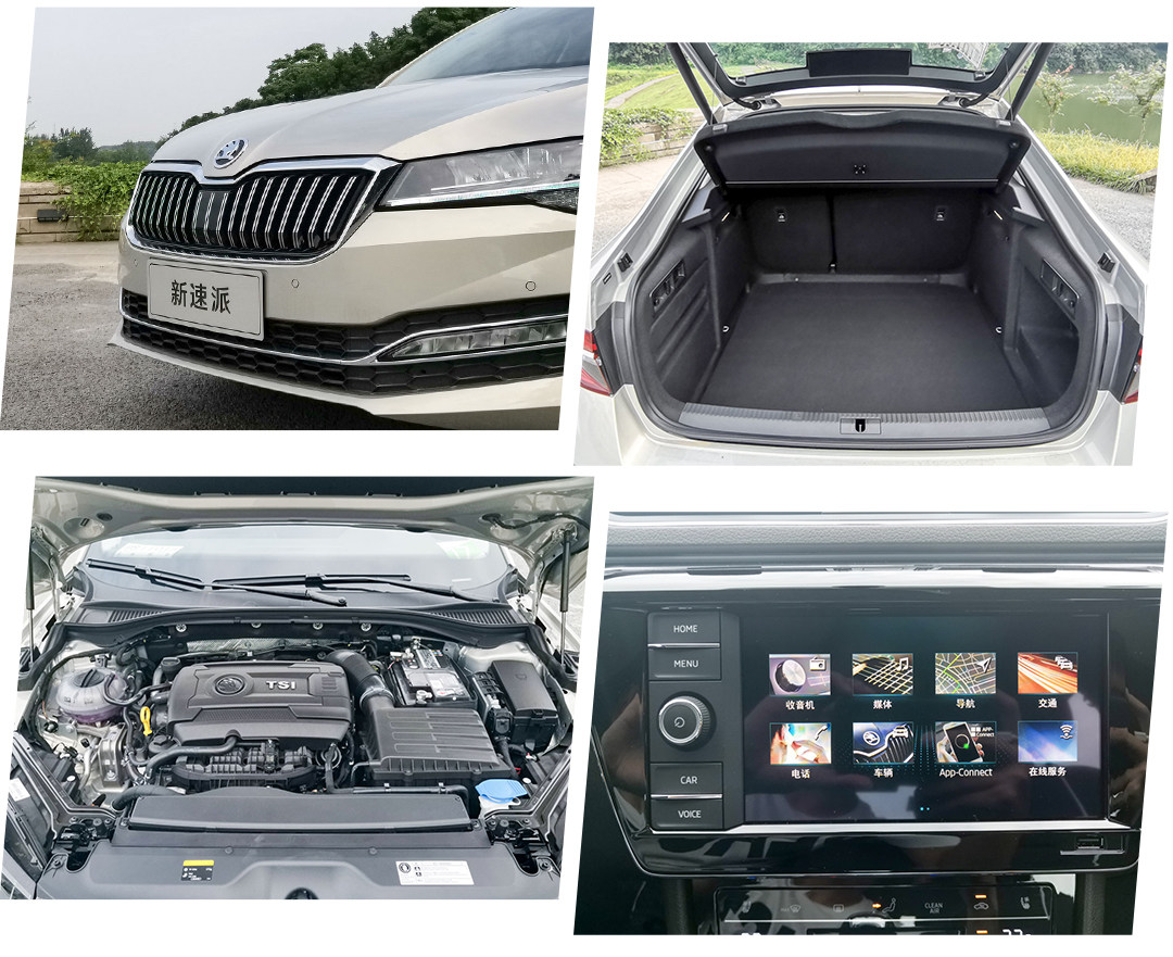 其次,相比迈腾,速派还是B级轿车里面为数不多的掀背轿车,储物空间大,掀背式的尾门和标志性的直瀑式进气格栅极具辨识度,1.4T和2.0T两款引擎均匹配7速双离合变速箱,动力输出稳定有劲,满足家用完全不成问题。