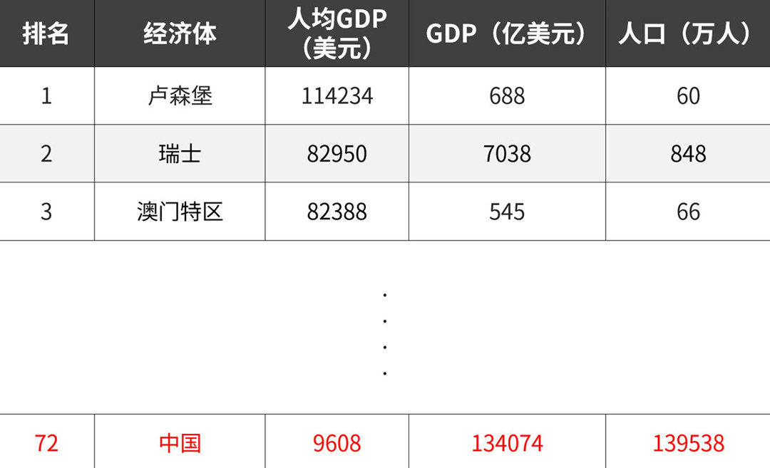 而根据国际货币基金组织在今年年初发布的《世界经济展望数据库》中显示,2018年我国GDP为134074亿美元,人口为139538万人。换算过后得到的人均GDP为9608美元。虽然9608美元的数值同比增长了11.9%,延续了经济腾飞之势。但无可否认的是,不足1万美元的人均GDP相比发达国家仍存在较大差距。