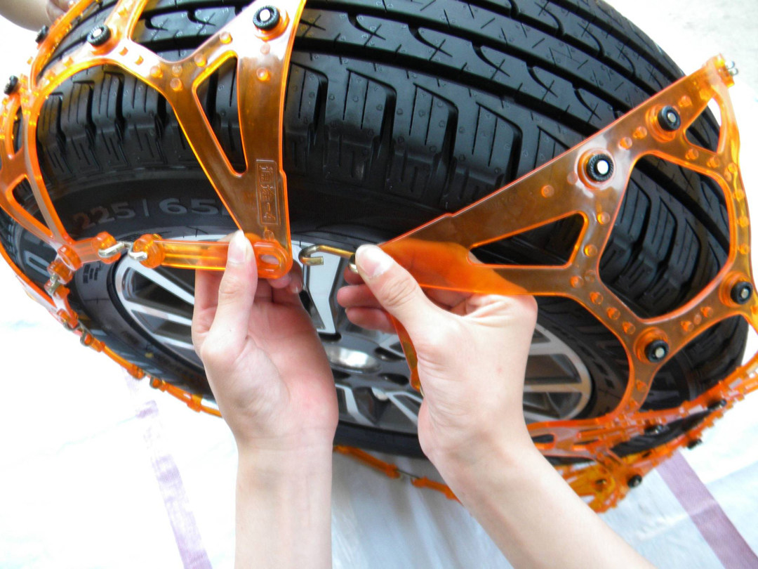 在积雪比较严重时,通常会使用到防滑链。防滑链就是固定在轮胎上,增加轮胎对地面的压强,来增加车辆寻迹性的一种辅助工具。传统的防滑链是金属链条式,这种防滑链比较耐用,只不过自重较大,会影响车辆的操控性能。