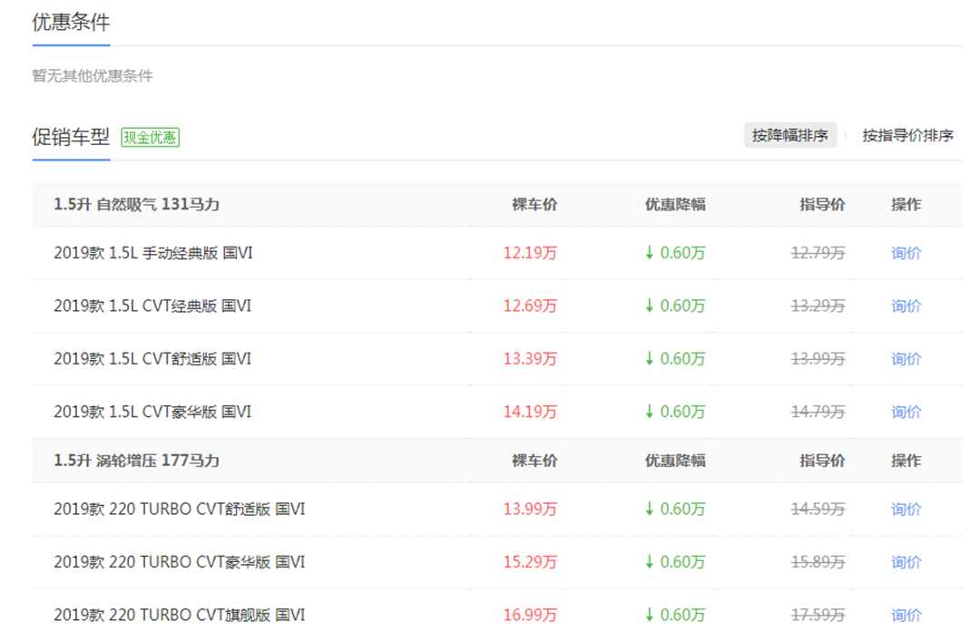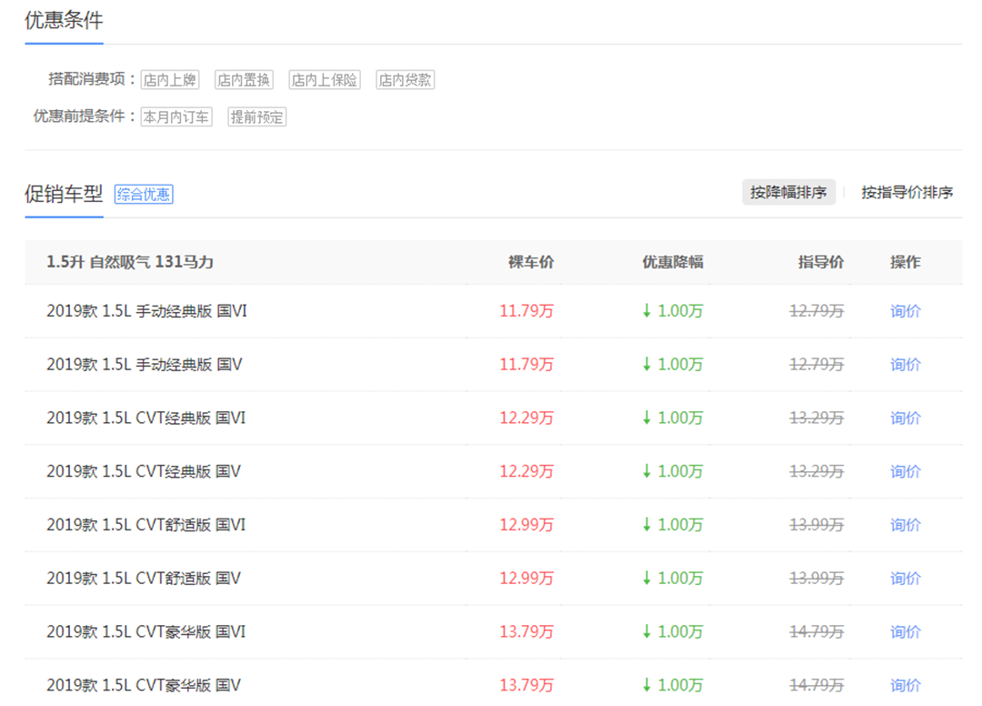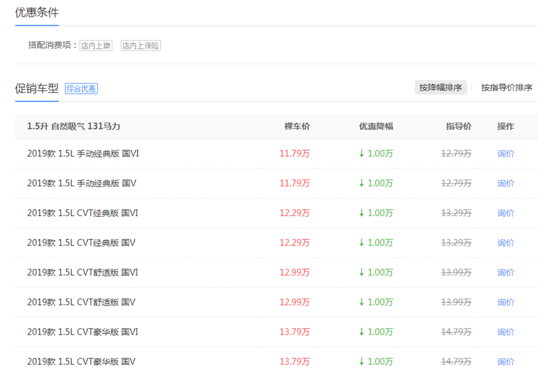 以往本田的车型基本只有3000~5000左右的优惠,不过教授发现XR-V竟然有着1万的优惠。但是仔细一看,发现都有着不同的附加条件,最少的也要在店里上牌和上保险,毕竟4S店也以为从中收取你的上牌服务费和保险返点。如果你不想有附加条件,那不好意思,你的优惠就只能去到6千了,至于个中差价是否值得,那就要车主才能衡量了。