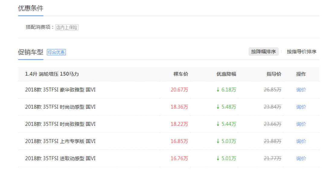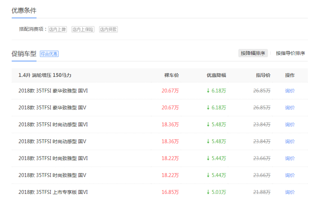 动则5、6万的优惠是不是非常吸引,但是当中还是存在这不少附加条件的,其中两家店都出现了需要店内贷款的这个条件,也就是说如果你想一次性付款也行,但优惠肯定是会减少的了。更巧的是,三家店都出现了需要店内上保险的规定,虽然很多人都会图个方便选择在店内办保险,但是作为要求就多少会让人觉得有些不合理,消费应该是自由选择的,万一我在外面有更低的价格呢?
