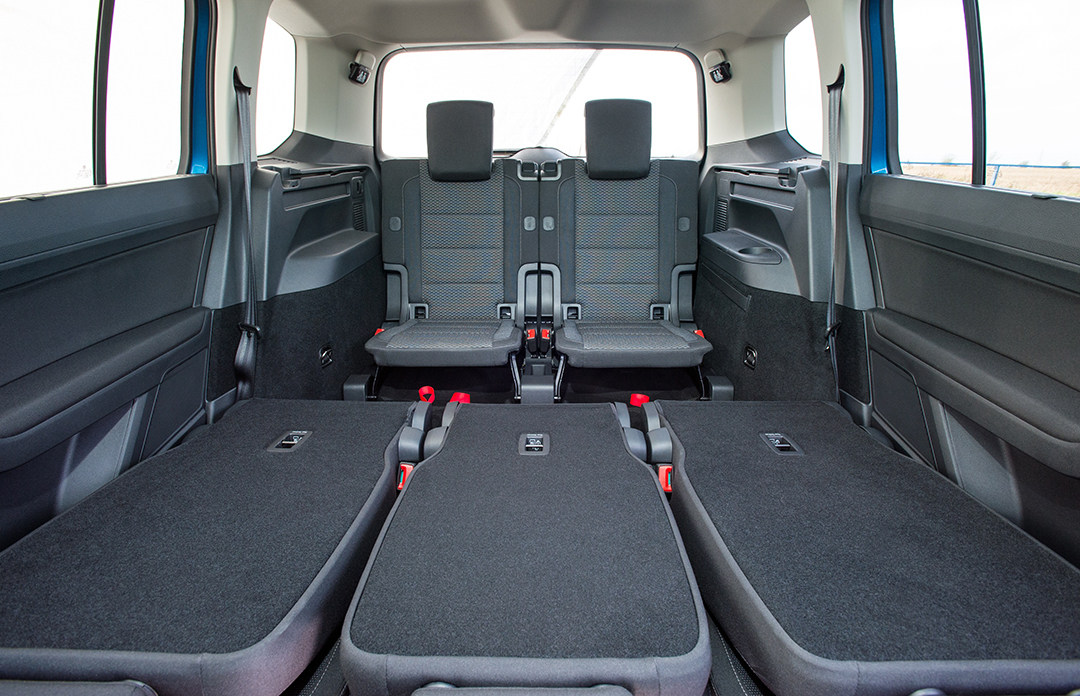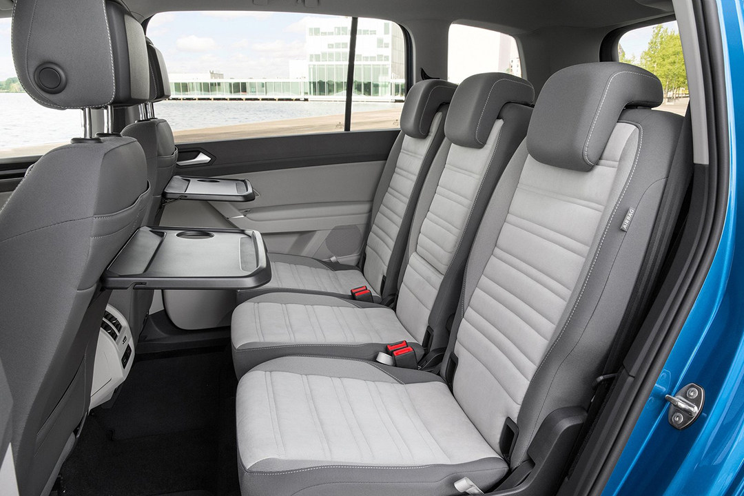 既然是MPV,那我们聚焦途安的空间表现,途安有7座和6座版本,它的空间灵活性可以给到满分,首先7座版第二排三个座椅都可以前后移动,为第三排腾出更多的腿部空间;然后第二排座椅放倒之后非常平整,而且就连副驾位都可以放倒,成为一个非常平整的空间,而且后排小桌板是标配配置,后排乘坐空间称得上满意。