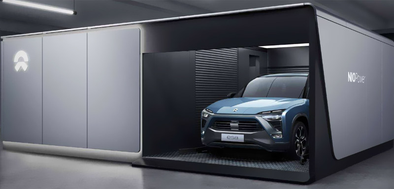 除了比亚迪,作为新势力造车企业的佼佼者蔚来,也开始着手布局动力电池更替业务。在ES8车型量产上市后,又大手笔为企业旗下的换电站造势宣传。车主通过NIO App下单,系统就会根据导航定位自动分配到最近的换电站。
