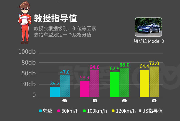 所以在教授的JS100测试当中,在时速120km/h的路况下,我们测得65.6分贝的噪音,需要说明的是这个数值从教授的分贝仪测出来是偏高的,实际的听觉其实也就50多分贝,这个数字要远低于我们的平均推荐值。