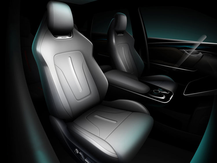 除此以外,新车也配备了类似于蔚来nomi的智能车载机器人,它的名字叫小CAN,透过它可实现对空调、音乐、导航等的语音控制。前排座椅采用一体式设计,主副驾均支持多向电动调节,座椅上还配有品牌英文“HYCAN”的标识,有几分跑车座椅的韵味。