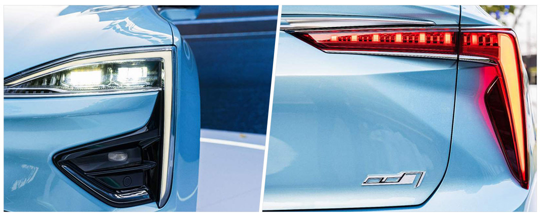 车尾灯个性十足,三瓣式设计同时向车身三个方向延伸,形成空间视觉感,与前日间行车灯遥相呼应,大角度倾斜的D柱也让尾部造型十分动感。