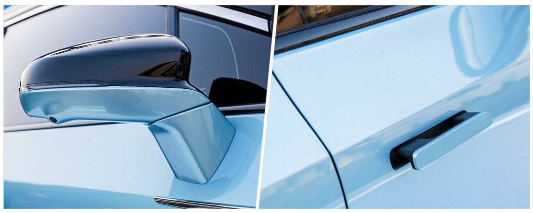 新车侧面采用了悬浮式的车顶以及隐藏式门把手设计,侧面线条较为简洁、一体化较强,轮圈采用多辐式双色造型。新车的长宽高分别为:4879mm/1937mm/1680mm,轴距2919mm。