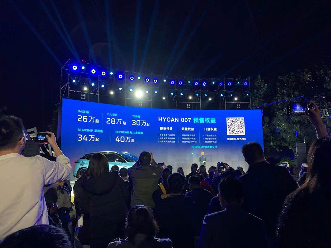 12月27日广汽蔚来旗下HYCAN合创品牌,首款SUV ——HYCAN 007首发亮相,并公布了预售价格:26-40万元。