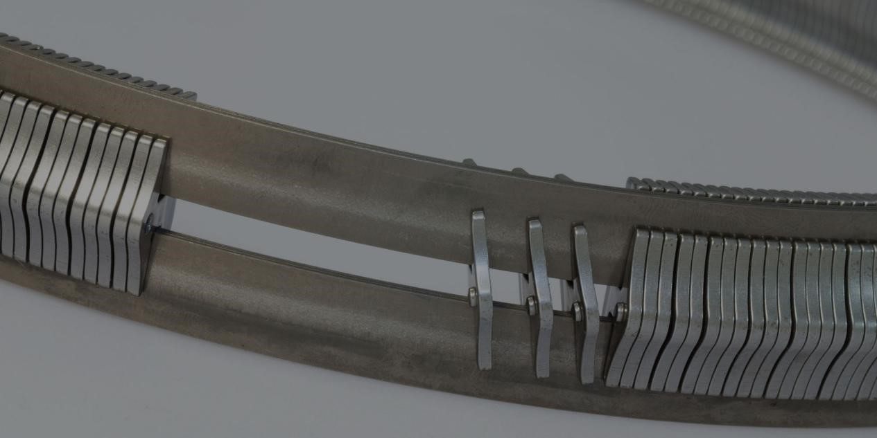 CVT的传动带最常见的就是带传动式(业内叫推式),看起来好像很复杂,其实就是用钢带从两侧固定推片。